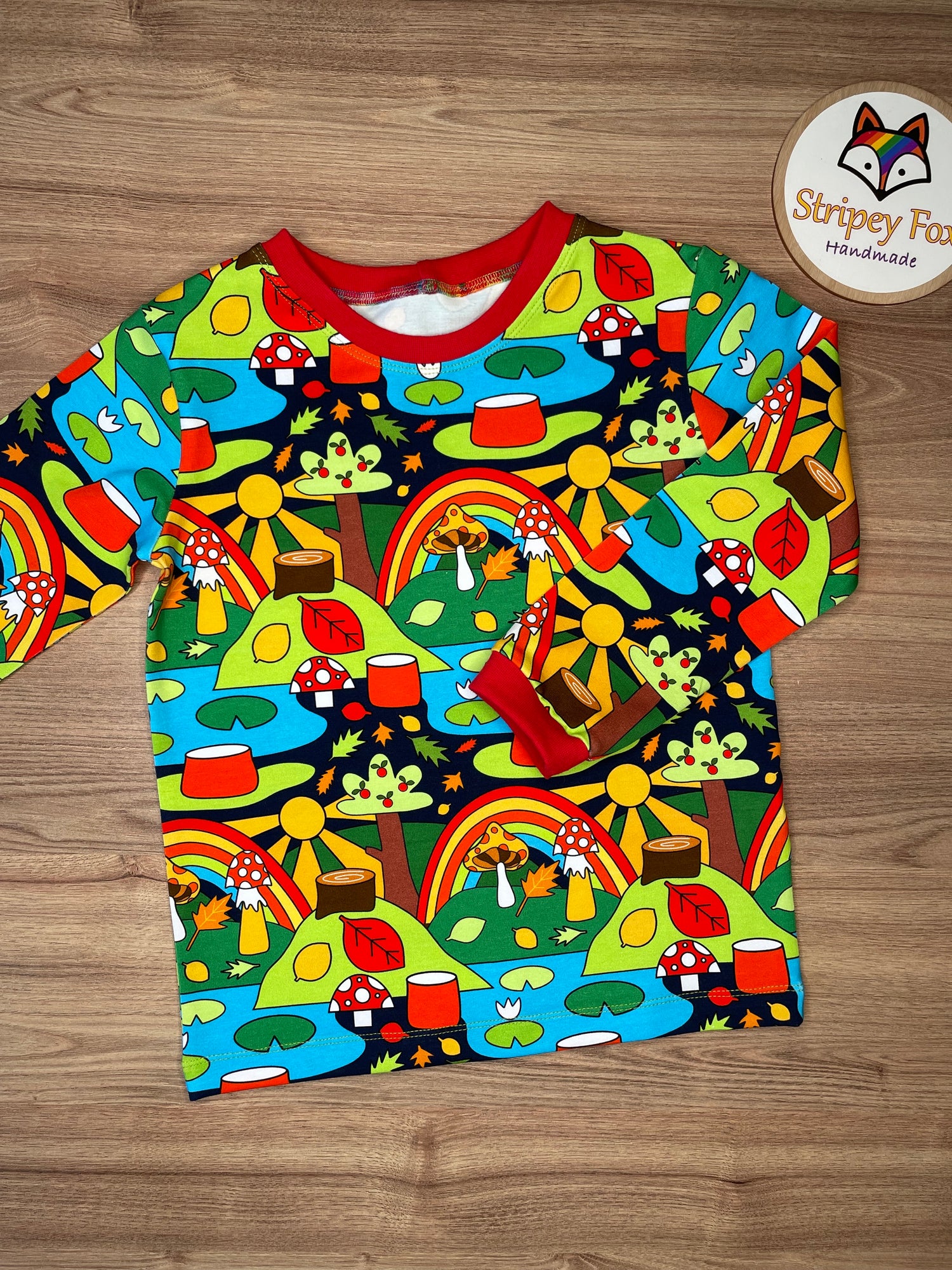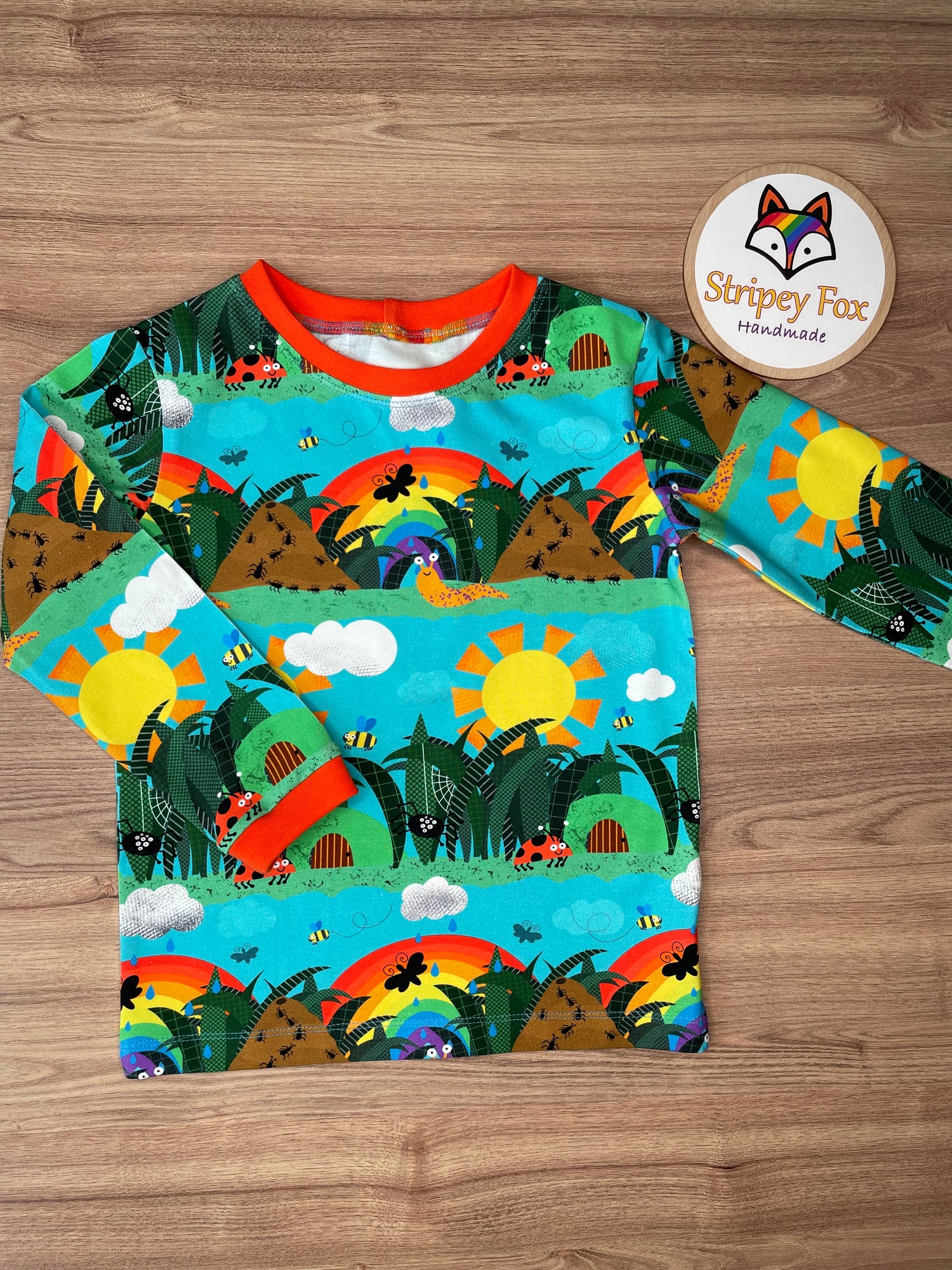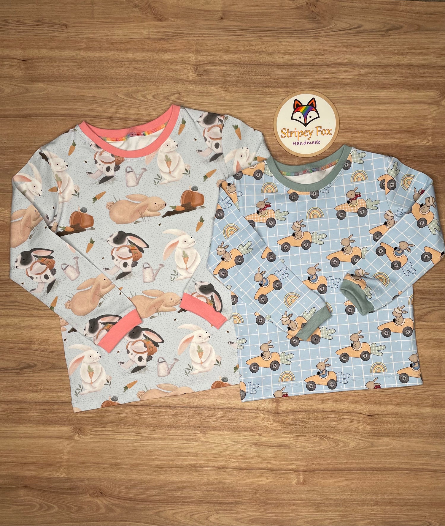 These children’s tops are made from 95% Cotton, 5% Elastane, they have short or long cuffed sleeves in a contrasting colour and a hemmed waist.