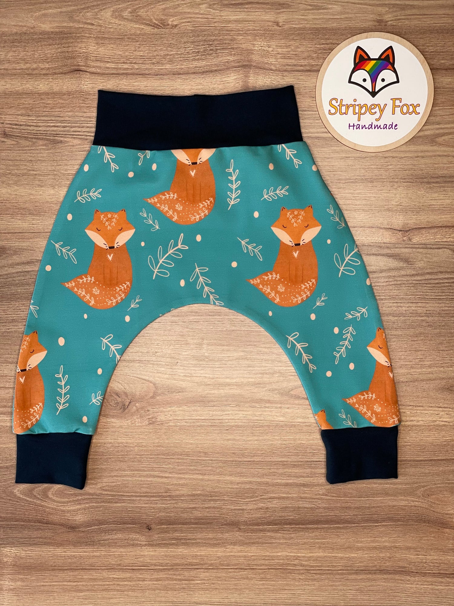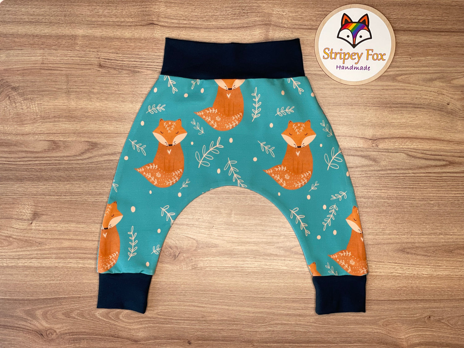 These handmade harems are made from premium organic soft jersey fabric, 95% Cotton 5% Elastane, that is comfortable and stretchy, perfect for rigorous child's play.