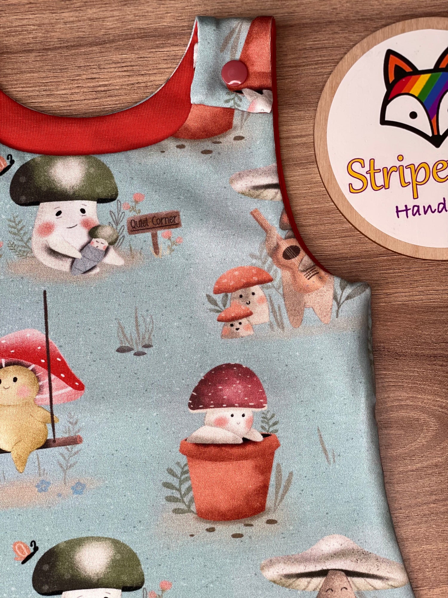 This handmade romper is made from premium soft jersey fabric, 95% Cotton 5% Elastane, that is comfortable and stretchy, perfect for rigorous child's play.