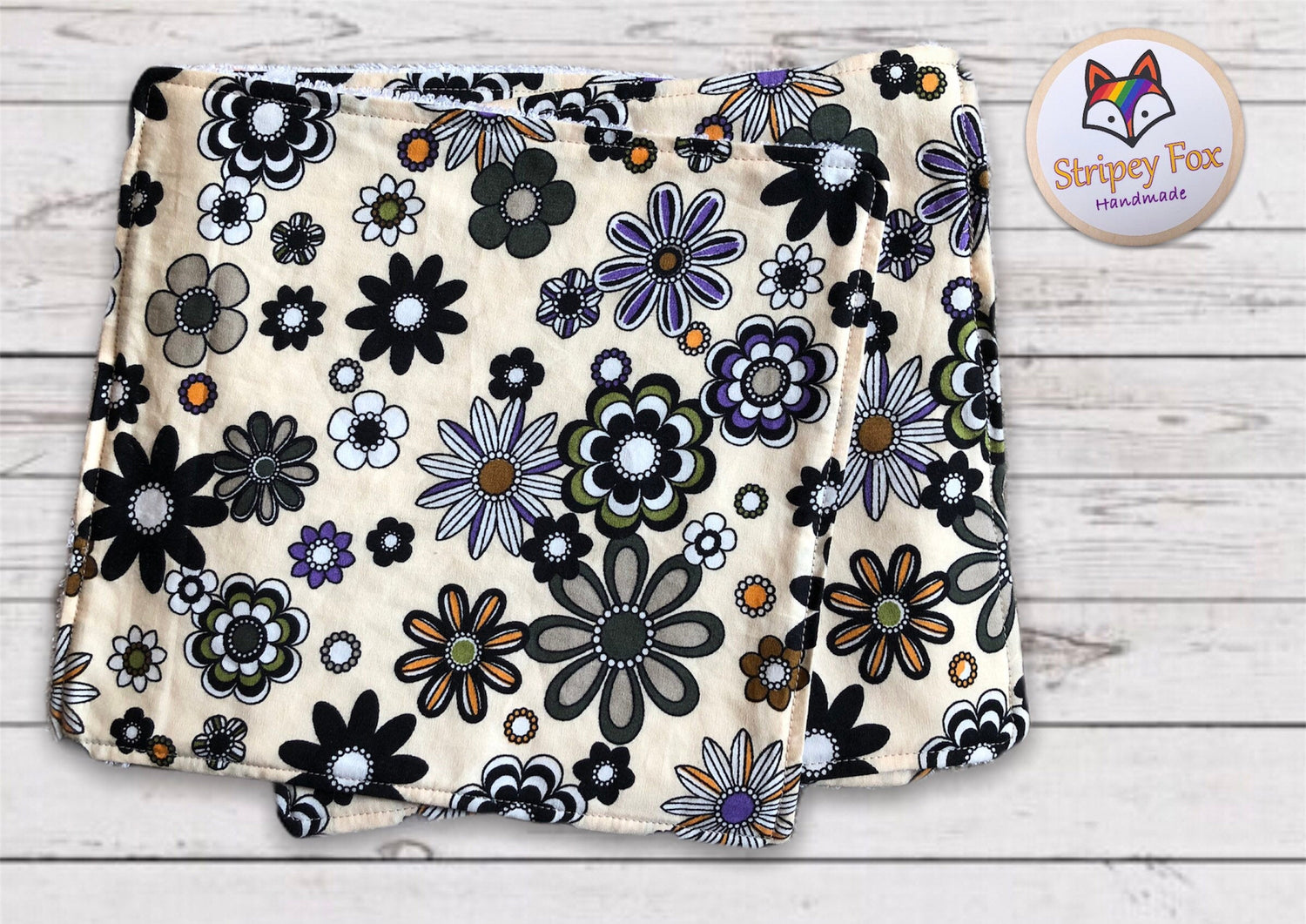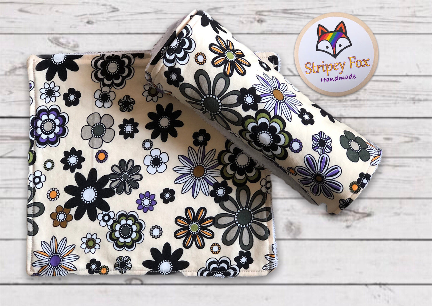 Set of 5 or 10 zero waste fabric reusable kitchen towels in the cream retro flowers print with white bamboo towelling.