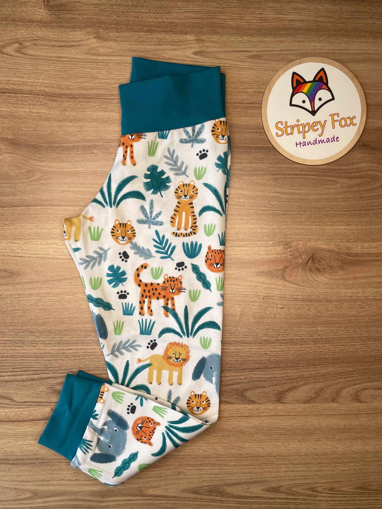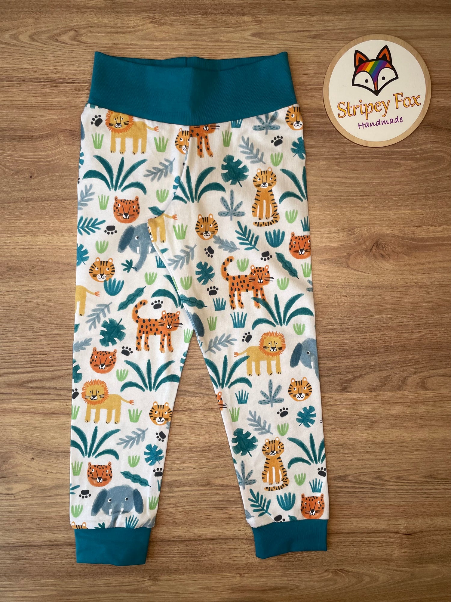 These handmade leggings are made from premium soft jersey fabric, 95% Cotton 5% Elastane, that is comfortable and stretchy, perfect for rigorous child's play.